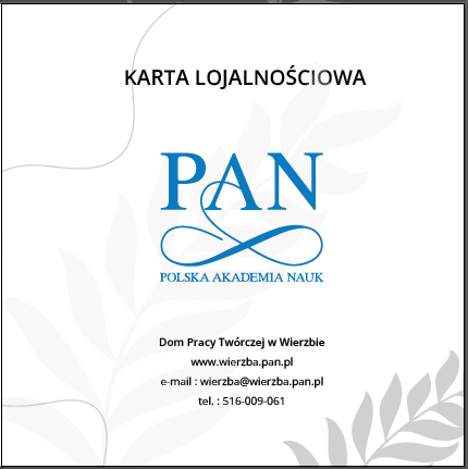 Rachunki z restauracji PANorama oraz Grill- Baru uwzględniane są wyłącznie po ich rozliczeniu w recepcji. Regulamin dostępny na www.wierzba.pan.pl/regulaminy